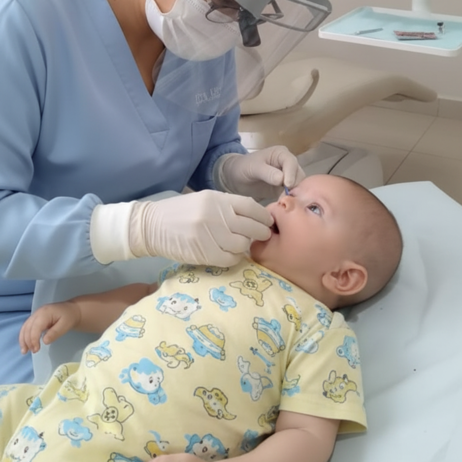 Cuida da saúde bucal infantil, prevenindo cáries, tártaro e irritações gengivais.